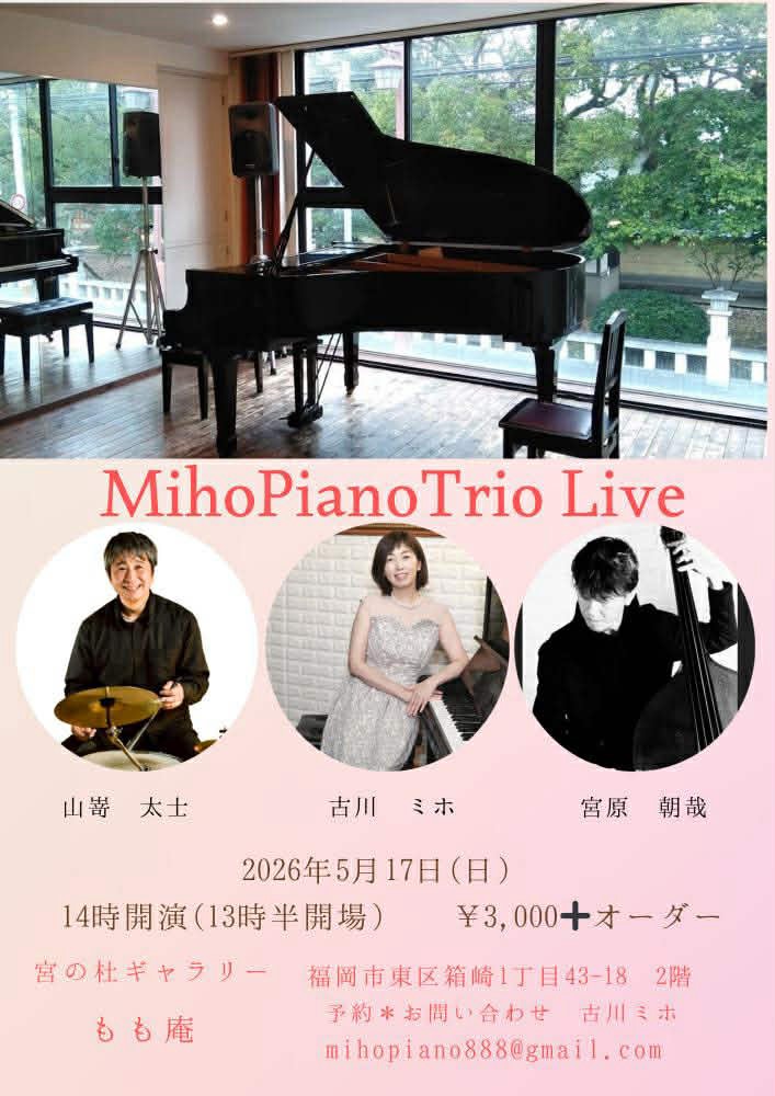 - 出 演 : 古川ミホ(ピアノ) , 宮原朝哉 (ベース) , 山嵜太士(ドラム)