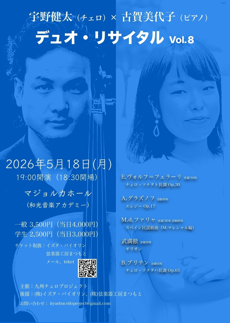 | イベント名 | 宇野健太(チェロ) × 古賀美代子(ピアノ) デュオ・リサイタル Vol.8 |