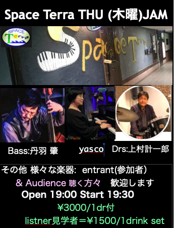 - 出 演 : Bass:丹羽肇、Drums:上村計一郎、pf:Yasco