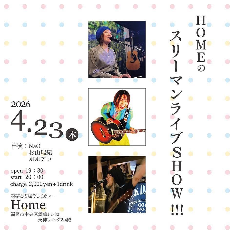 | イベント名 | NaO ×杉山瑞紀×ボボアコ~HOMEのスリーマンライブSHOW!!! |