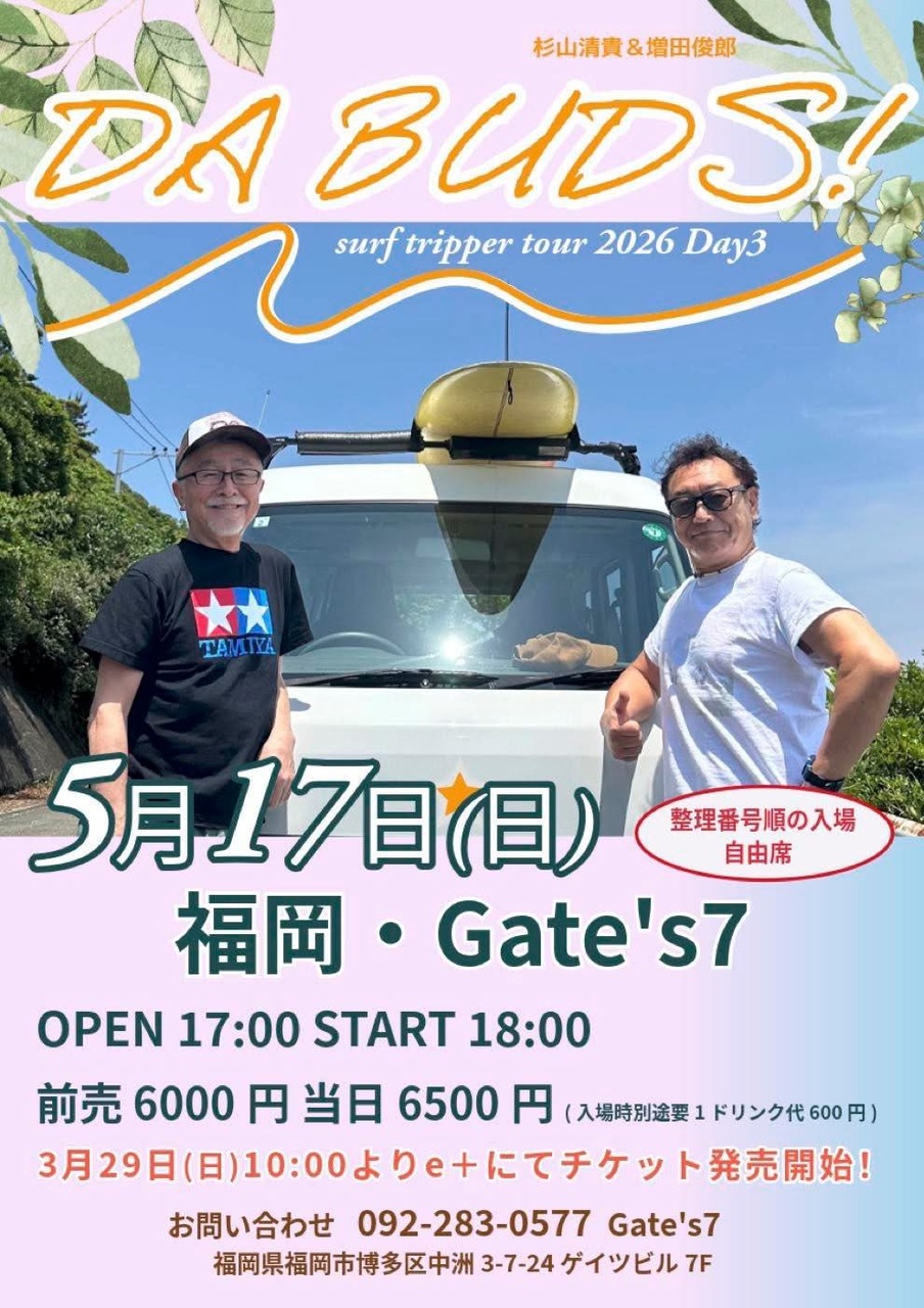 音ナビ隊トップ > DA BUDS surf tripper tour 2026 Day3@福岡杉山清貴 / 増田俊郎