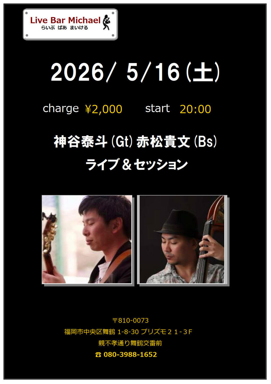 - 出 演 : 神谷泰斗(Gt)赤松貴文(Bs)ライブ&セッション2000円20:00スタート